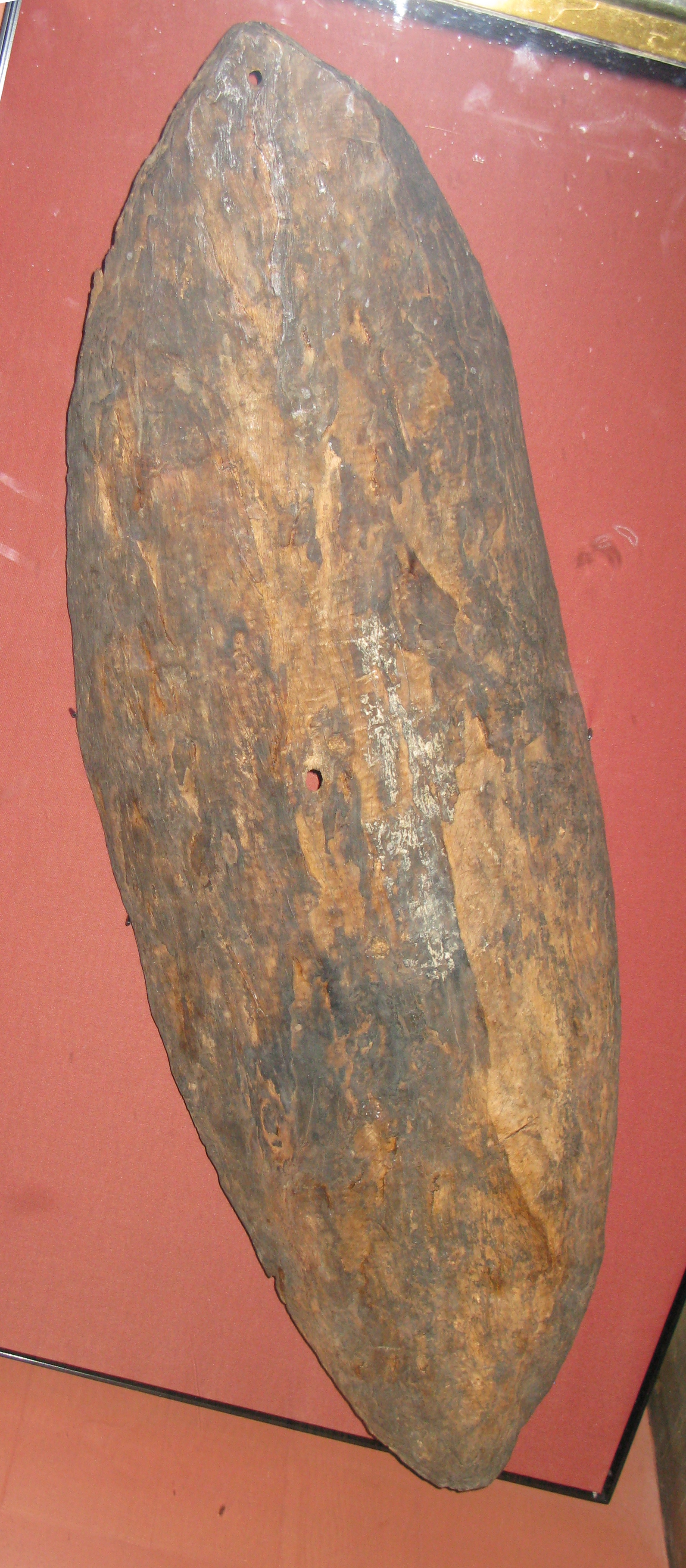 For many years this shield was labelled as ‘Bark Shield’ and thought to have been acquired by James Cook upon landing at Kamay (Botany Bay) in 1770. The British Museum display described the events of Cook’s landing, claiming that the shield had been dropped by a retreating warrior when fired upon by Cook and his men.